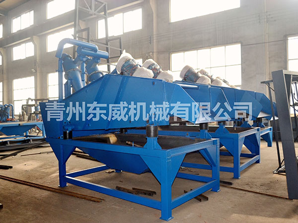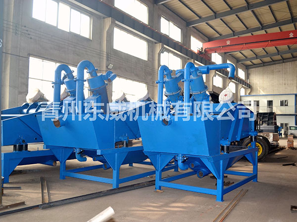 目前現(xiàn)有的洗沙生產(chǎn)線上,絕大部分采用濕法生產(chǎn)工藝,不論采用何種形式的洗砂機,其缺點就是細沙流失嚴重,嚴重影響沙子的級配,造成級配不合理,細度模數(shù)偏粗,大大降低了機制砂的產(chǎn)品質(zhì)量。過多的細沙排放,還會造成環(huán)境污染。為解決上述問題,青州東威機械技術(shù)部門潛心研發(fā)了細沙回收機(細砂回收機),該細沙回收系統(tǒng)吸收國外先進技術(shù),結(jié)合本土砂粉實際情況而設(shè)計的細沙回收設(shè)備。細沙回收機廣泛應(yīng)用于洗沙場、砂石骨料加工系統(tǒng)、玻璃原材料加工系統(tǒng)、人工制沙生產(chǎn)線、選煤廠粗煤泥的回收以及環(huán)保工程(泥漿凈化)等,可有效解決細沙回收問題。