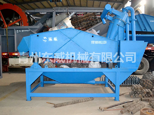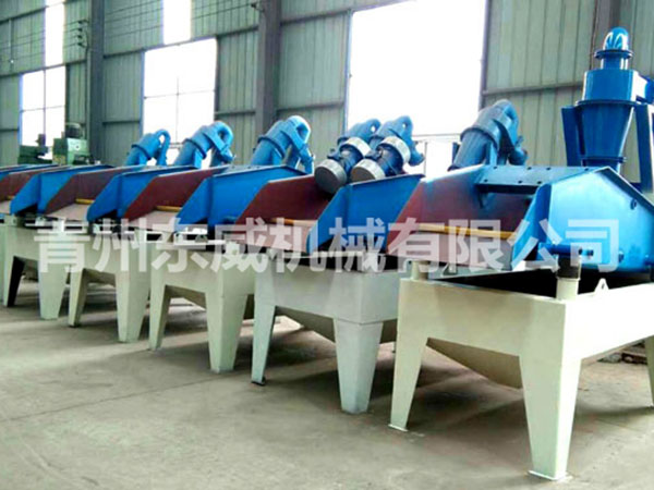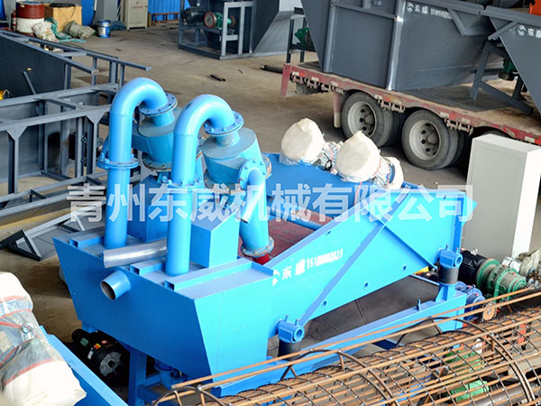 目前現有的洗沙生產線上,絕大部分采用濕法生產工藝,不論采用何種形式的洗砂機,其大的缺點就是細沙流失嚴重,嚴重影響沙子的級配,造成級配不合理,細度模數偏粗,大大降低了機制砂的產品質量。過多的細沙排放,還會造成環境污染。為解決上述問題,青州東威機械技術部門潛心研發了細沙回收機(細砂回收機),該細沙回收系統吸收國外先進技術,結合本土砂粉實際情況而設計的細沙回收設備。細沙回收機廣泛應用于洗沙場、砂石骨料加工系統、玻璃原材料加工系統、人工制沙生產線、選煤廠粗煤泥的回收以及環保工程(泥漿凈化)等,可有效解決細沙回收問題。